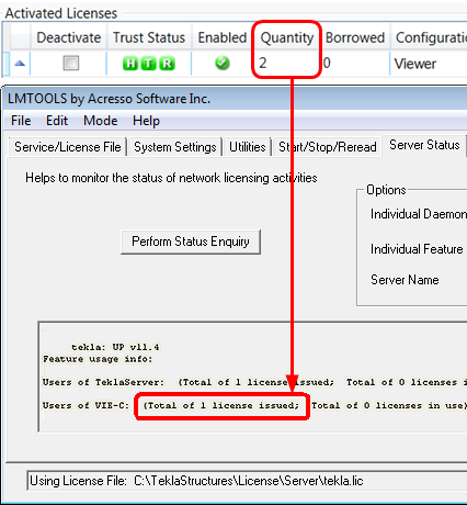 Tekla License Administration Tool と LMTOOLS で、認証取得済みのライセンスの数が一致しない。