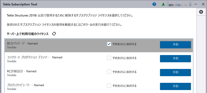 サブスクリプションライセンスは保持されています。Tekla Subscription Tool の従来のバージョンでサブスクリプションを使用している間、Tekla Structures を実行し続けてください。オンラインのままの場合、ライセンスを返却するまで保持は自動的に更新されます。