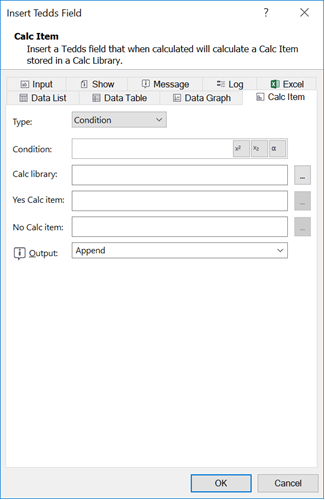- In the Yes Calc item field, type the calc item that will be placed in the calculations if the value of the condition is true.