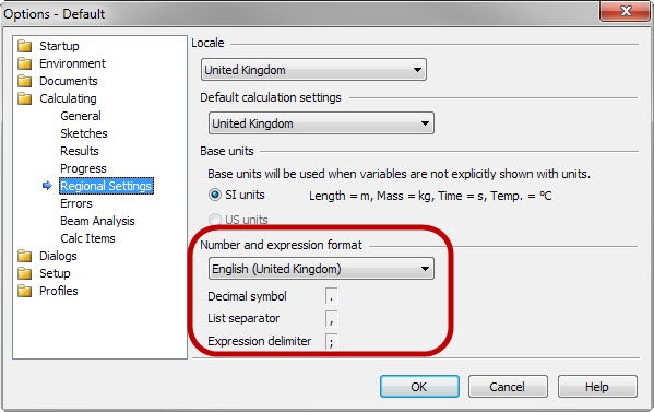 All Tedds calculations are written using the following settings: