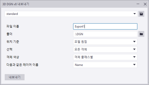 선택한 부재 또는 전체 모델을 3D DGN으로 내보낼 수 있습니다. 이전 v7.0 내보내기 또는 최신 v8.0 내보내기를 사용할 수 있습니다.