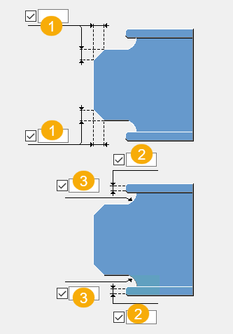 웨브 모따기 보조 부재 웨브의 상단 및 하단 모따기 치수. |