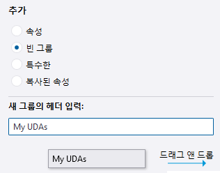 UDA(사용자 정의 속성)를 포함한 속성을 기존 그룹에 추가