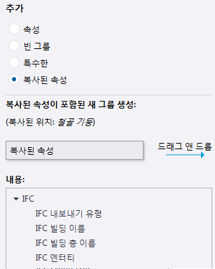 예제: IFC 관련 사용자 정의 속성을 속성 창 레이아웃에 추가하고 다른 객체 유형으로 복사하는 방법