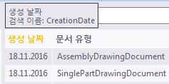 예를 들어, CreationDate: 11/20/2020은 2020년 11월 20일에 생성된 도면을 찾아냅니다. |
