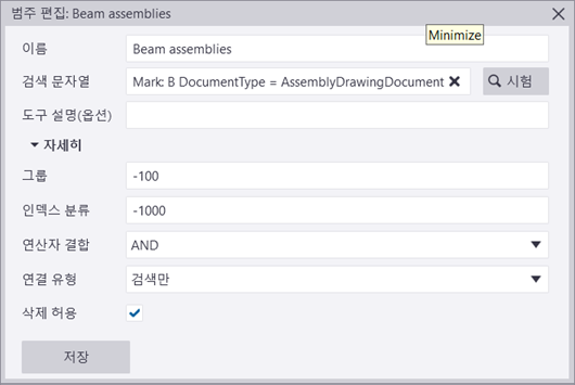 빈번한 검색을 반복적으로 입력하지 않도록 검색을 저장할 수 있습니다. 이 작업은 현재 검색을 새 범주로 저장하여 수행됩니다. 기존 범주를 함께 결합하여 더 복잡한 쿼리를 쉽게 생성할 수도 있습니다.