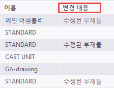 CHANGES 속성은 출도된 도면이 변경되었거나 부재가 수정된 경우처럼 도면에 생긴 변경 사항을 표시합니다. 이 속성은 도면 레포트의 변경 내용에 대한 정보를 추가하는 데 사용할 수 있습니다. 또한 문서 관리자에는 이 정보에 대한 변경 내용 열이 있습니다.