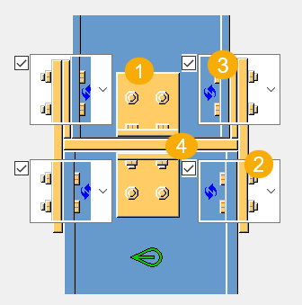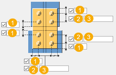 그림 탭을 사용하여 플랜지 플레이트의 볼트 체결 방향을 정의하고 플레이트의 볼트 체결 또는 용접 여부를 선택합니다.