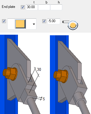 브레이스 로드부터 엔드 플레이트의 오프셋을 정의합니다. |