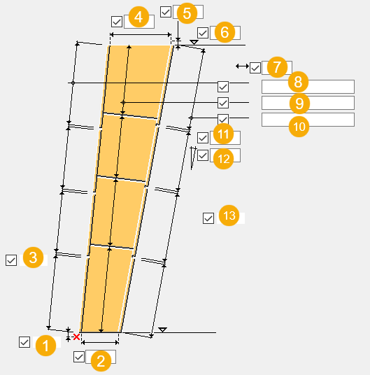 그림 탭을 사용하여 선택한 점에 대한 기둥 치수와 위치를 정의합니다.