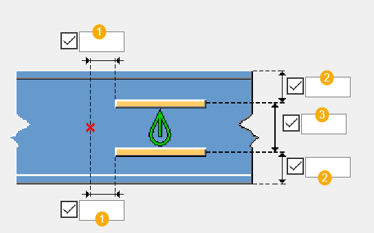 두께 = 보 하부 플랜지 두께 너비 = 0.5*(하부 플랜지 너비-웨브 두께) 높이 = 300 mm |