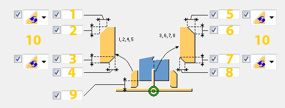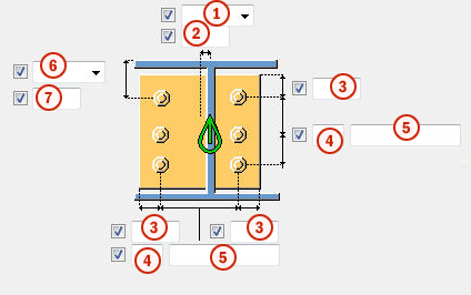 추가 플레이트 탭을 사용하여 각 앵커 철근 하단에 생성된 프로파일(추가 프로파일 1)과 앵커 철근 행을 접합하는 프로파일(추가 프로파일 2)의 배치, 회전 및 유형을 제어합니다.
