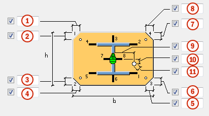 두께 = 20mm 너비가 기둥의 최대 횡단면 치수에 따라 달라집니다. 높이가 기둥의 최대 횡단면 치수에 따라 달라집니다. |