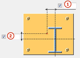 그림 탭을 사용하여 스티프너 모따기, 베이스 플레이트 모따기, 그리고 그라우트 홀의 위치와 크기를 제어합니다.