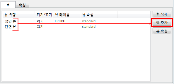 뷰 생성 패널에서 행 추가를 클릭하여 도면에 새로운 뷰를 추가합니다.