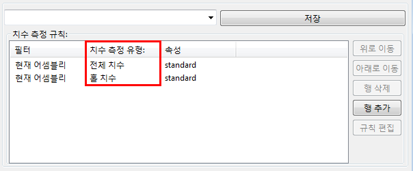 첫 번째 규칙으로 전체 치수를 선택하고, 두 번째 규칙으로 홀 치수를 선택합니다.