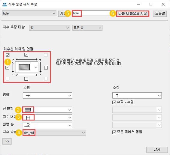 홀 치수의 치수 생성 규칙을 생성합니다.