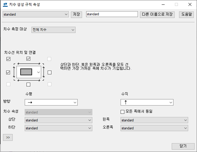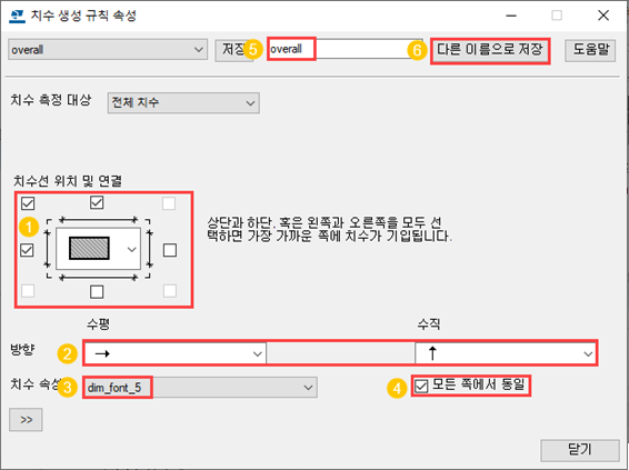 이제 새로운 치수 생성 설정을 저장할 수 있는 도면 속성 파일을 생성하였습니다.