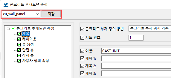 나중에 비슷한 설정의 도면이 필요할 때 도면 속성 파일 cu_wall_panel을 사용할 수 있습니다.