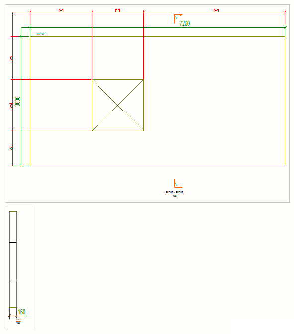 벽체 두께를 표시해야 하므로 콘크리트 부재도면에 단면 뷰도 필요합니다. 다음으로 단면 뷰의 전체 치수를 생성합니다.