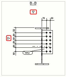 단면 뷰 기호의 화살표는 아래와 같이 단면 뷰의 방향을 나타냅니다.