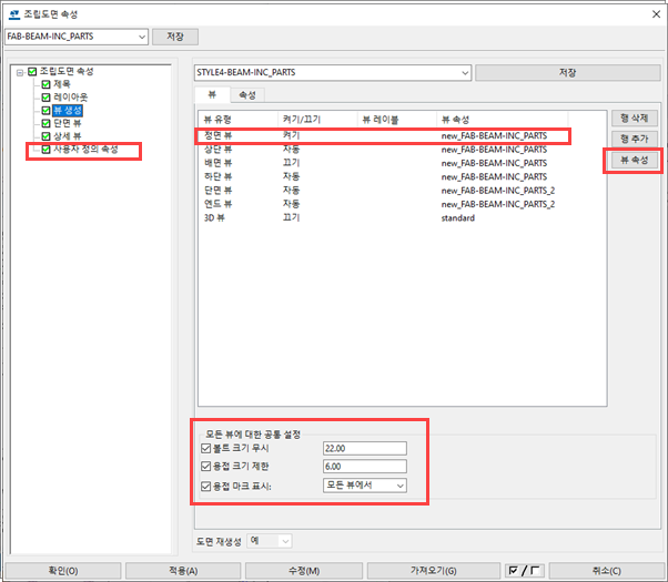 이번이 첫 번째 프로젝트이므로 사용자 환경에서 사전 정의된 설정을 사용하여 프리캐스트 제작 도면을 생성한 후 필요에 따라 도면 모드에서 수동으로 도면을 수정하는 것이 좋습니다.