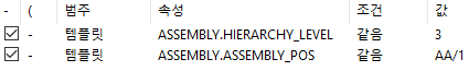 ASSEMBLY.HIERARCHY_LEVEL를 입력하고, 같음을 선택하여 원하는 어셈블리 레벨을 값으로 정의합니다. -