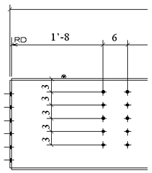 철근 그룹에 대한 치수는 켜기, 치수 속성에 지정된 치수 태그, 치수 속성에서 부재 가장자리 추가된 닫는 치수로 설정됩니다(부재 가자자리는 예로 설정). |