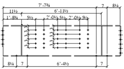 다음은 Tekla Structures가 철근 치수 탭에서 선택한 다양한 옵션을 사용하여 통합 치수 생성에서 철근 그룹 치수를 생성하는 방법을 보여주는 예입니다.