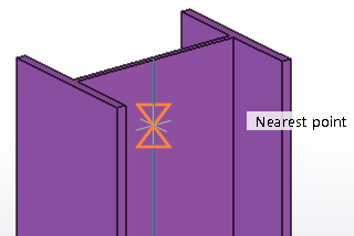 스냅 기호는 가능한 스냅 점에 따라 변경됩니다. Tekla Structures는 스냅할 수 있는 점을 자동으로 강조 표시합니다.