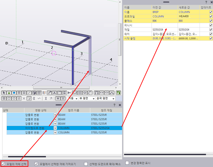 아래는 변환된 보와 기둥의 이미지입니다.