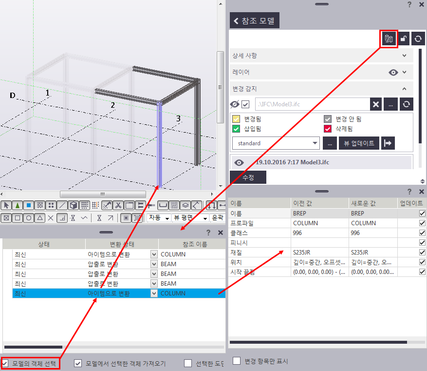- IFC 객체 변환 변경 관리를 사용하여 변환. 변경 관리를 사용하여 새로운 참조 모델 리비전으로 업데이트 변환을 수행할 수도 있습니다.