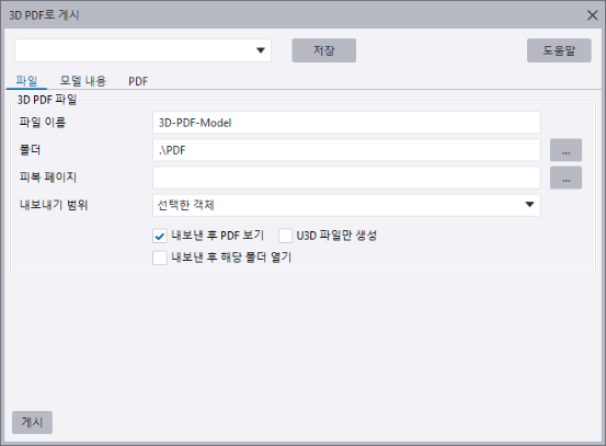 | 내보낸 후 해당 폴더 열기 | 내보내기 후 3D PDF 내보내기 폴더를 엽니다. |