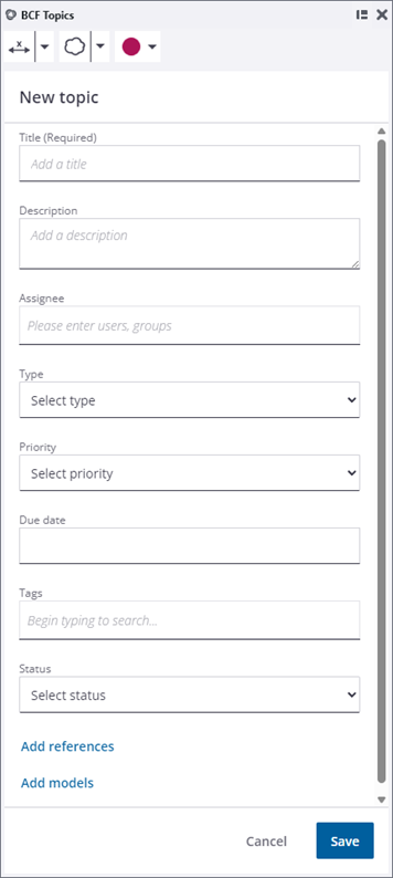 BCF 파일에는 주제 데이터만 포함됩니다. 주제는 3D 뷰를 통해 모델을 참조하는 경우가 많습니다. 모델 파일은 BCF 파일에 포함되지 않으므로 모델을 별도로 내보내야 합니다.