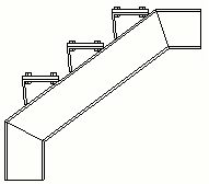 C형 스트링거를 이용한 계단. 수평 하단 계단참 유형. 목재 계단이 철골 브라켓에 볼트 이음됩니다. |
