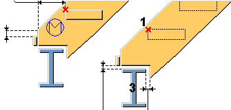 상단 점부터 상단 계단참의 철골 상단까지 수직 거리를 정의합니다. 상부 계단참을 생성하지 않으면 스트링거 철골 상단이 사용됩니다. 상단 계단참 유형을 노칭으로 설정한 경우, 상부 점부터 스트링거 상단 수평 컷부까지 수직 거리를 정의합니다. |