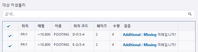 필요 시, 매우 유사하지만 번호가 다른 어셈블리 또는 콘크리트 부재를 대상 목록에 수동으로 추가할 수 있습니다.