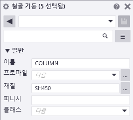 모델 또는 도면에서 여러 모델 또는 도면 객체를 선택하고 한 번에 속성을 변경할 수 있습니다. 선택한 객체는 철골 기둥 또는 도면 스케치 객체와 같은 동일한 객체 유형이거나 서로 다른 객체 유형일 수 있지만 속성 창에는 선택한 모든 객체에 공통된 속성만 표시됩니다.