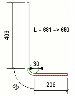 예를 들어 굽힘 반경을 고려하여 철근의 외부 표면을 따라 길이를 계산하려면 다음과 같이 실행합니다.