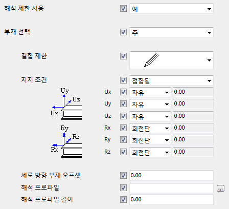 | 세로 방향 부재 오프셋 | 자세한 정보 해석 부재 속성을 참조하십시오. |