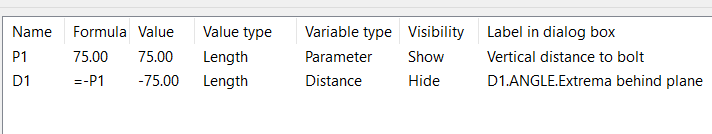 이 예에서는 보조 보 상단 플랜지부터 볼트 그룹의 첫 번째 볼트까지 거리를 계산하는 변수 수식을 생성 방법을 보여줍니다.