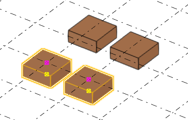 모델 또는 도면에서 객체를 복사하는 기본 방법은 원점과 하나 이상의 대상 점을 정의하는 것입니다.