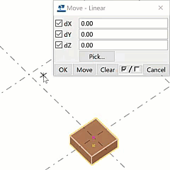 원점과의 거리를 지정하여 모델 또는 도면의 새 위치로 객체를 이동할 수 있습니다. 숫자를 입력 대화 상자를 사용하여 거리를 지정합니다.