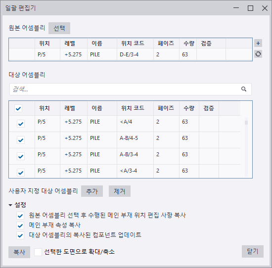 어셈블리 또는 콘크리트 부재 일괄 편집