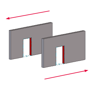 다음 예에서는 형상의 상단 설정과 패널의 방향이 다르기 때문에 각 콘크리트 부재마다 위치 번호가 다릅니다. 빨간색 화살표는 모델링 방향을 나타냅니다.