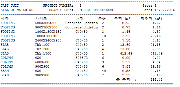 Tekla Structures 모델에 포함된 정보의 레포트를 생성할 수 있습니다. 레포트는 예를 들면 도면, 볼트, 부재의 목록일 수 있습니다. Tekla Structures는 모델 데이터베이스에서 직접 레포트를 생성하므로 정보가 항상 정확합니다. 레포트에는 선택한 부재나 전체 모델에 대한 정보가 포함될 수 있습니다.