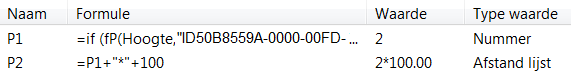 In het vak Formule voert u =P1+"*"+100 voor de nieuwe afstandsvariabele in.