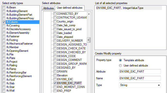 Tekla Structures gebruikt configuratiebestanden voor het definiëren welke gebruikersattributen en templateattributen als eigenschappensets naar IFC-modellen worden geëxporteerd.