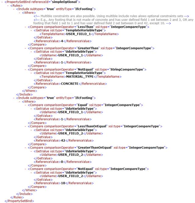 IfcPropertySetConfigurations.xsd is een schemabestand waarin de structuur van het XML-bestand wordt beschreven en dat wordt gebruikt om het XML-bestand te valideren. Dit bestand wordt gelezen wanneer de software wordt gestart.