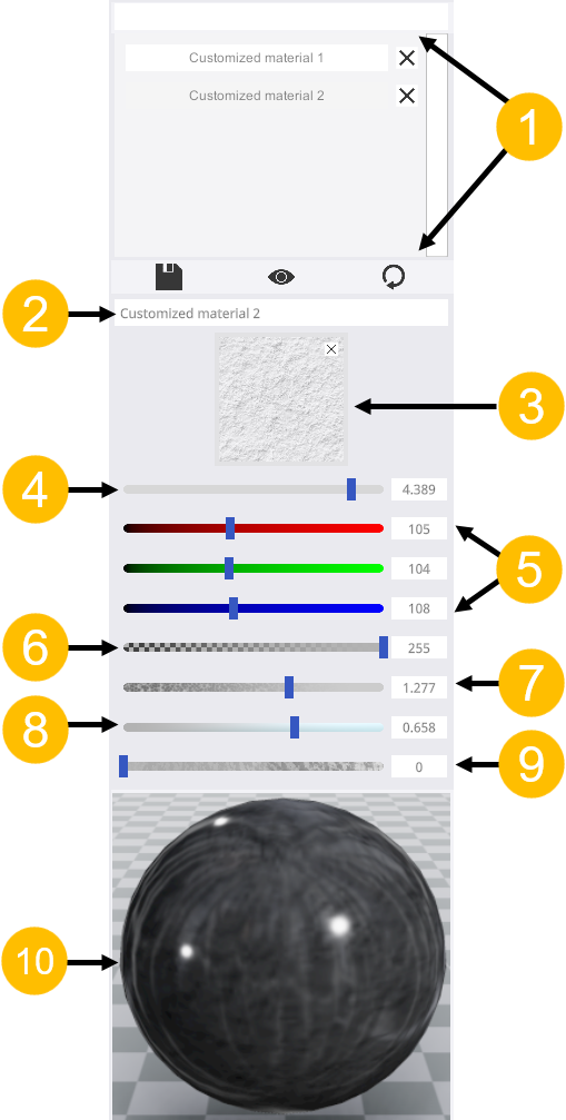 Verschaling of tegels van textuur, RGB-kleuren, transparantie, ruwheid, metallic look of schoksterkte aanpassen